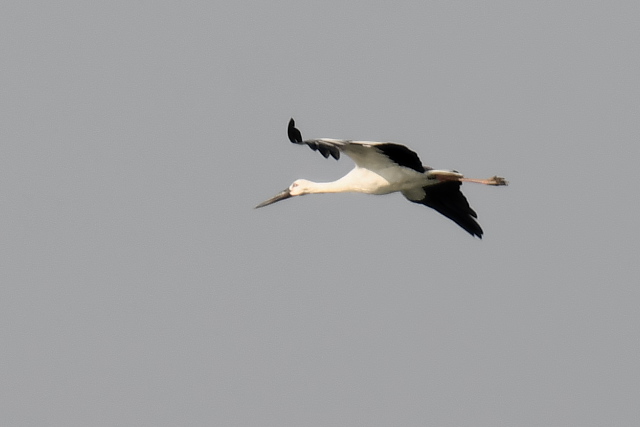 羽の下面の黒色の模様がきれいだなあと思います。 車で移動中、コウノトリの姿を見かけました。