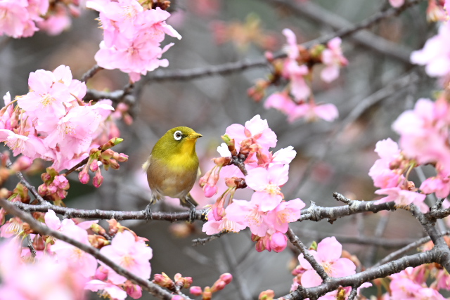ベニマシコは2度ほど見かけましたが、いずれも短い時間でした。 メジロのみ19日の撮影です。カワヅザクラに群れでやってきて賑やかでした。