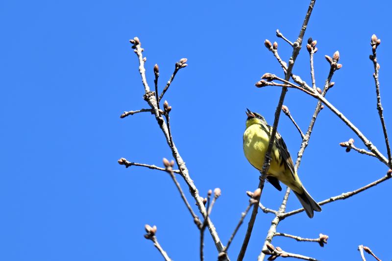 テリトリーを巡回しているのでしょう。何度か同じ場所に戻ってきて囀っていました。