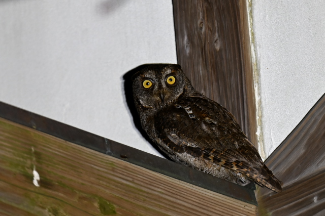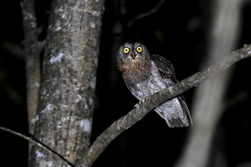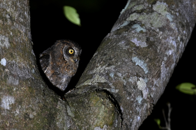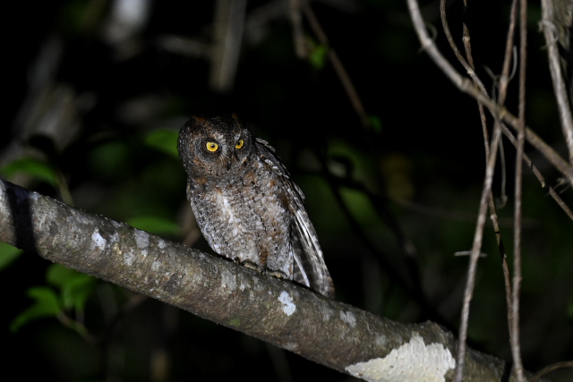 夜の野鳥観察は初めての体験なので、ガイドさんをお願いしました。 林道に入ると、リュウキュウコノハズクの声が遠くに近くに聞こえていました。この日は比較的出現率が高く5、6カ所で見ることができました。 夜の林道にはカエルやヘビ、ネズミ、ウサギなども出ているのでそれらを傷つけないようにガイドさんは慎重に運転していました。 リュウキュウコノハズクの声は宿泊したホテルでも聞きました。夜が明ける前の真っ暗な中、外に出てみると、目の前で雄雌が鳴き交わすような声がしていました。明かりがあれば姿を確認できたかもしれません。