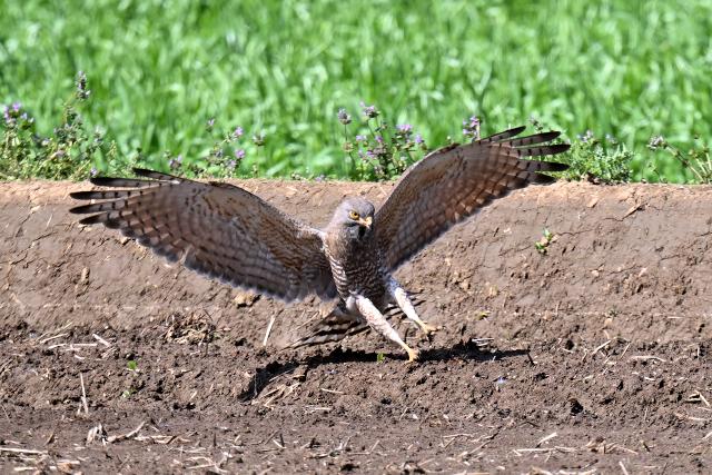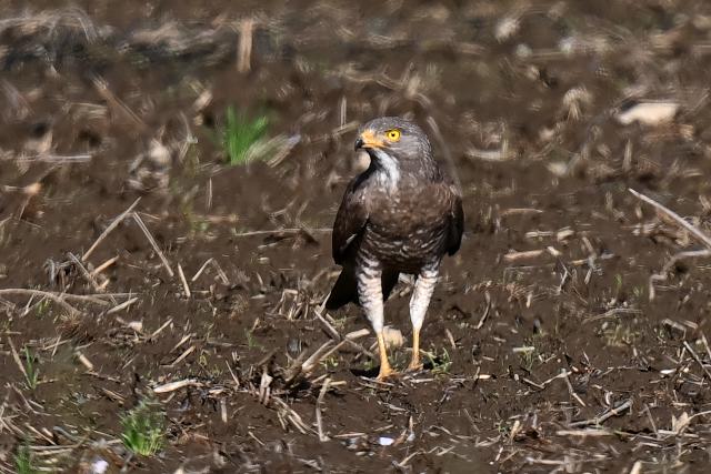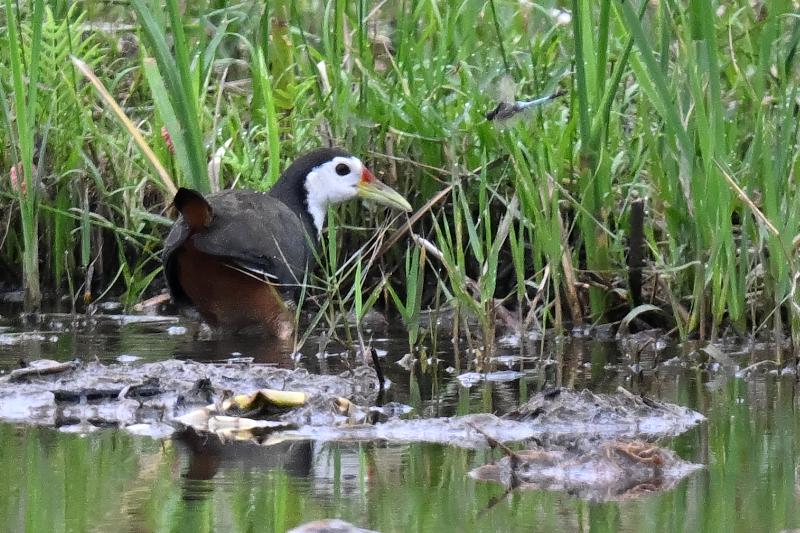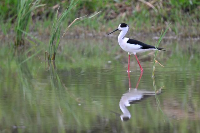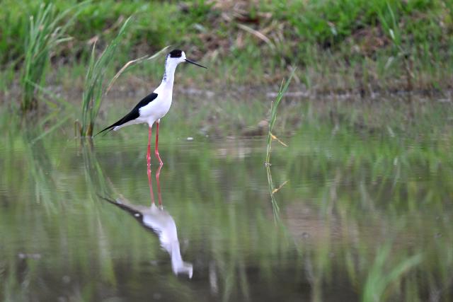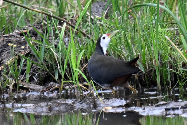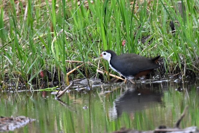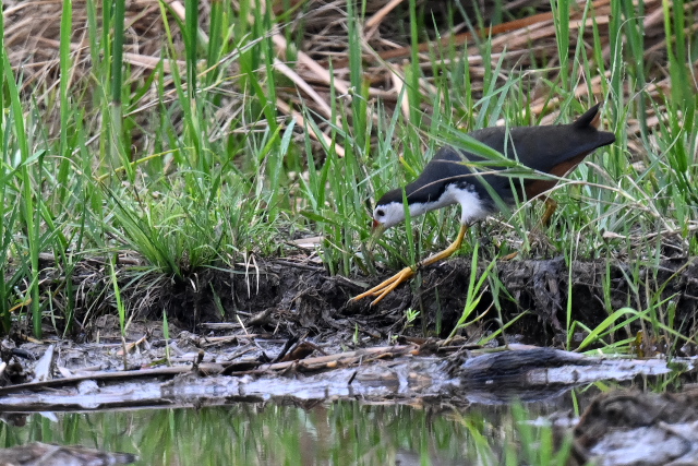 田んぼではセイタカシギ1羽とシロハラクイナ3羽を見ました。シロハラクイナは警戒心が強くて動くものを見るとさっと隠れてしまいます。じっと待つと、声がして姿を現しました。 日本でシロハラクイナを見るのは初めてだったので、とてもうれしい出会いでした。