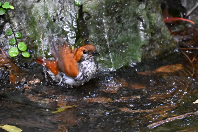 奄美大島に行ってきました。天気が心配な状況でしたが、予報が直前になって変わり、心配した雨に降られずに行ってくることができました。 森の中に入るとアカヒゲの囀りがあちらこちらから聞こえて、少し待って探すと薄暗い枝に止って囀るアカヒゲの姿を見ることができました。テリトリーを移動して少し明るいところにでてくることもありました。 雌は水浴びにやってきたところも見ることができました。 |