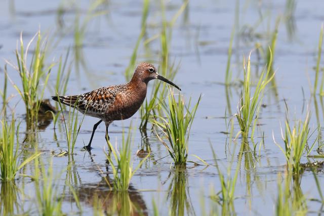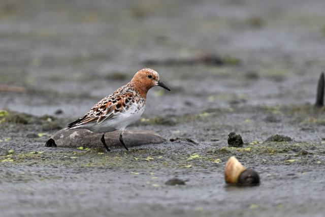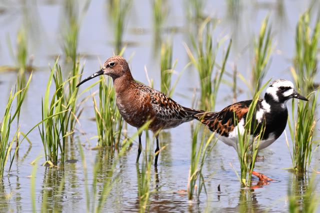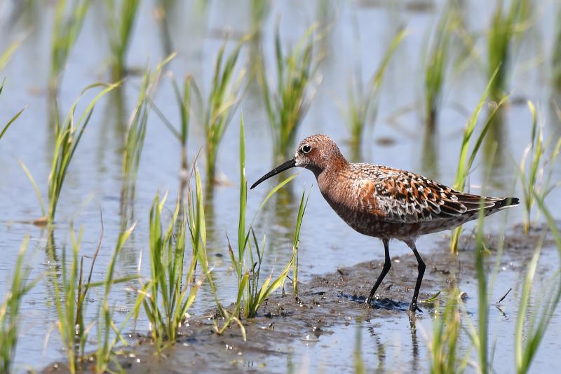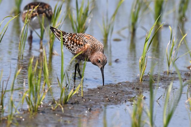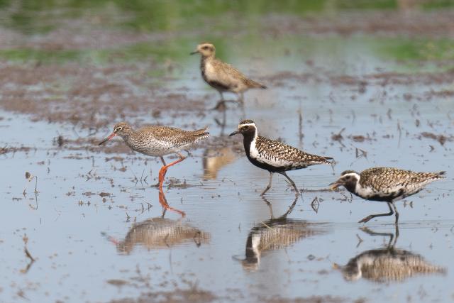 サルハマシギはキョウジョシギ、ムナグロ、キアシシギの群れの中にいました。夏羽の出会いのチャンスをもらったことに感謝します。
