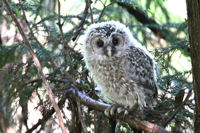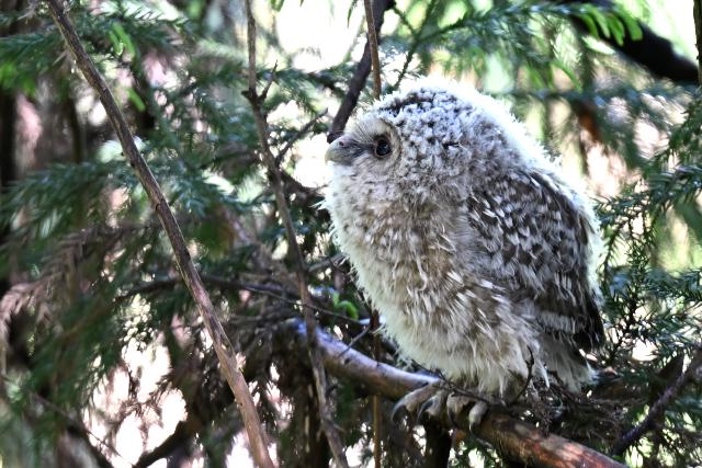 早朝、宿周辺ではクロツグミの声に重なって、カッコウの声が遠くに近くにしていました。運良く木の梢に姿を見ることができました。 コサメビタキは木の枝にコブのような巣を作ります。園を歩いているといくつか見つかりました。
