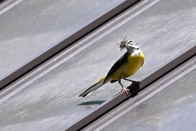 出会ったキセキレイは虫をいっぱいくわえていました。雛の食欲が旺盛なのでしょう、ひっきりなしに虫を捕って運んでいました。
