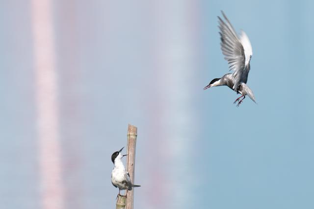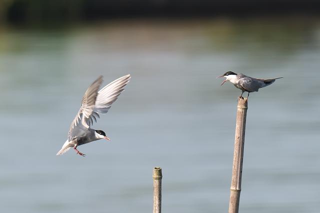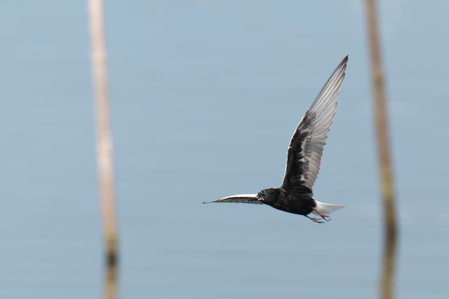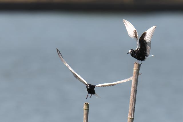 成鳥は2羽見ました。10年以上も前に九十九里浜で見て以来です。水上や近くの田んぼを飛んでは、竹の棒に戻って休んでいました。