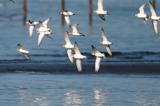 今日はメダイチドリが一番多く見られました。潮が引き始める直前から群れが飛び、干潟が見え始めると早速降り始めました。