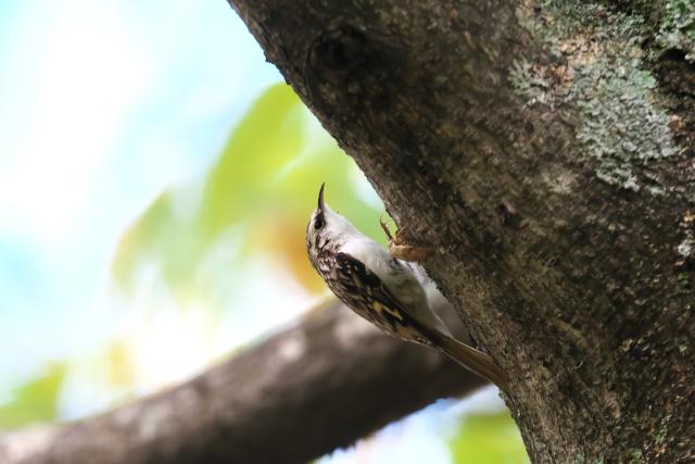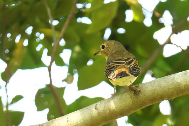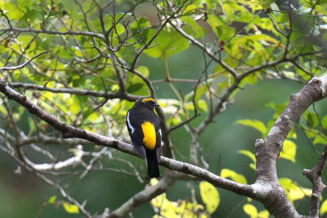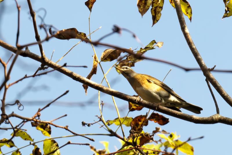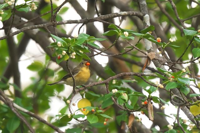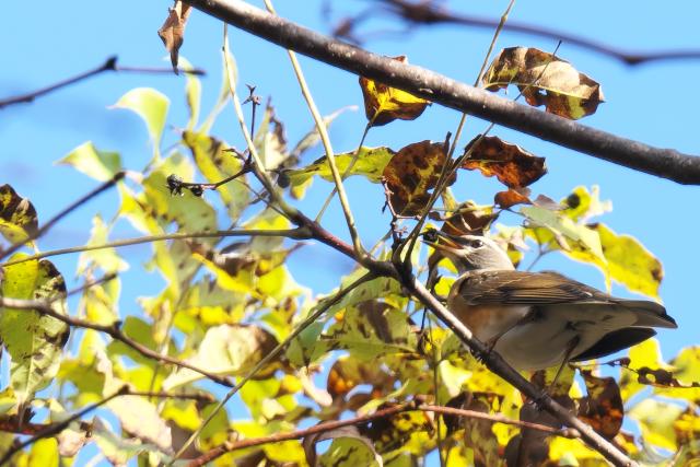 マミチャジナイは高いところでキハダの実を採食していて、見やすいところには降りてきません。