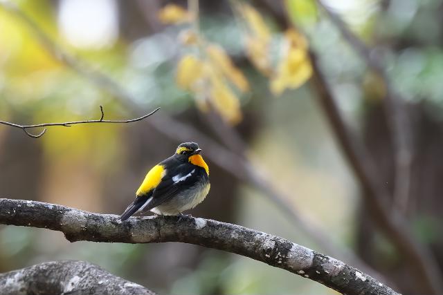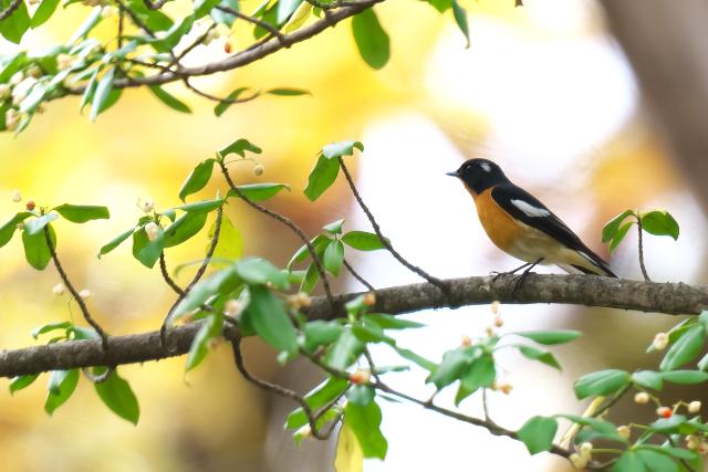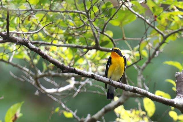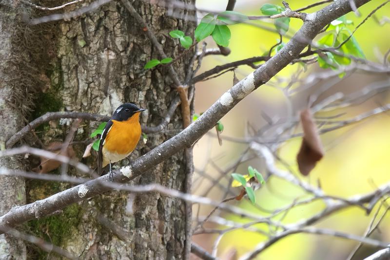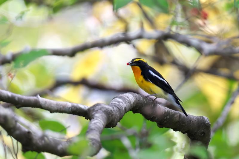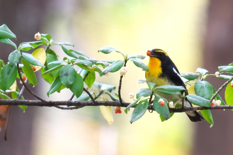 雄のキビタキがツルマサキの実を独占するように、近くにずっと止まっていました。