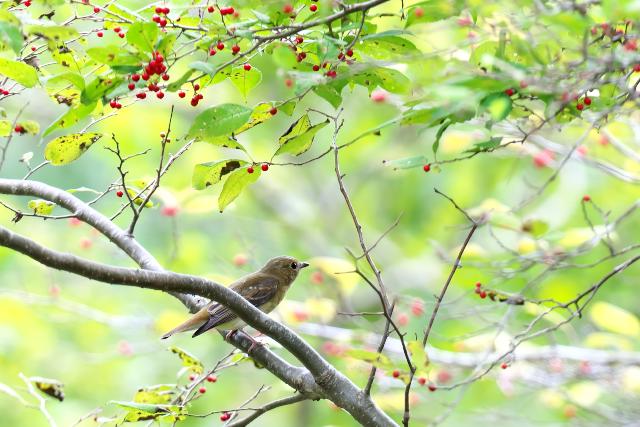 実が熟したところは多くはなく、ムギマキが見られた場所は限られていました。 運良く雄の成鳥にも出会うことができました。