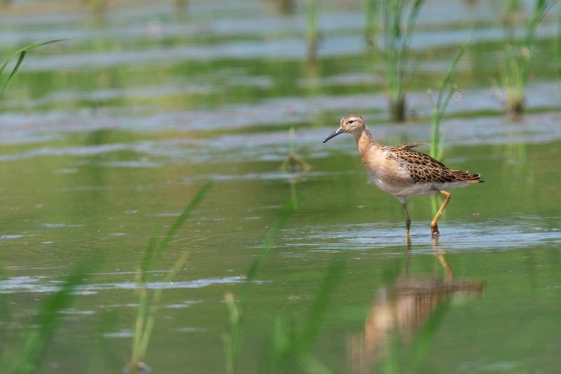 田んぼではたくさんのシギなどを見ました。天気もよく、水田の緑と水を背景にどの鳥も美しく見えました。 チュウシャクシギは海辺で見ました。