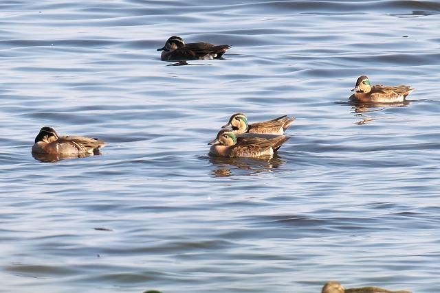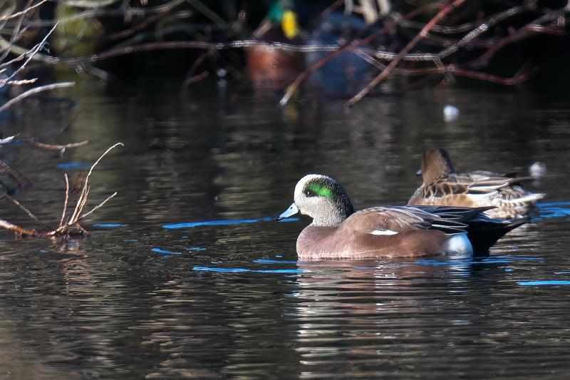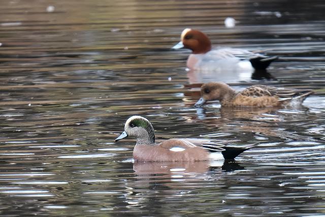 ヒドリガモの中に1羽のアメリカヒドリが混じっていました。