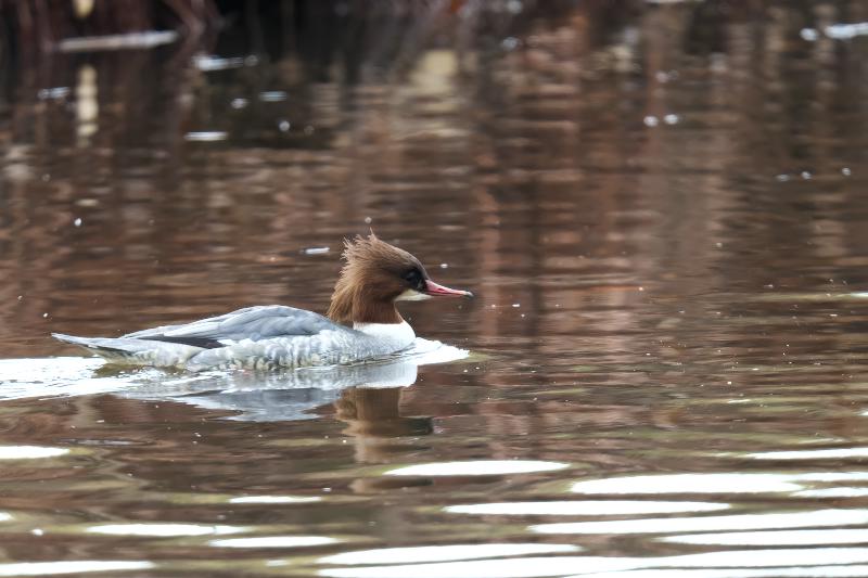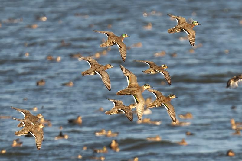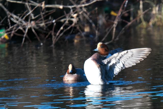 トモエガモの数が増してきています。今日は岸近くに寄って来ていて、ときどき飛ぶ様子は見応えがあります。