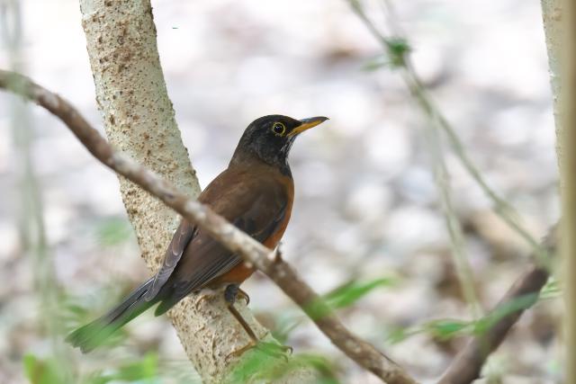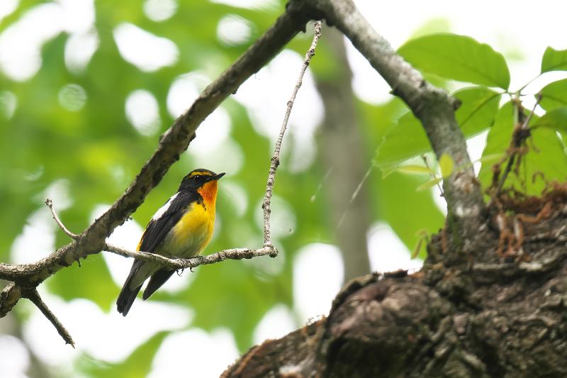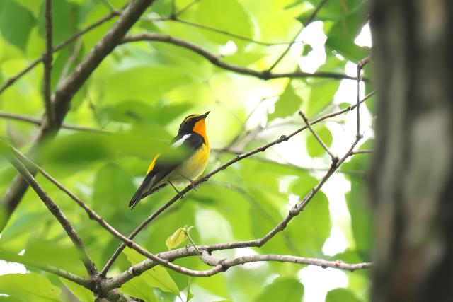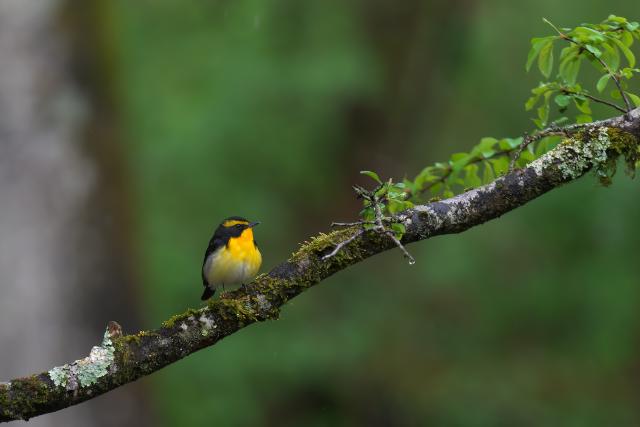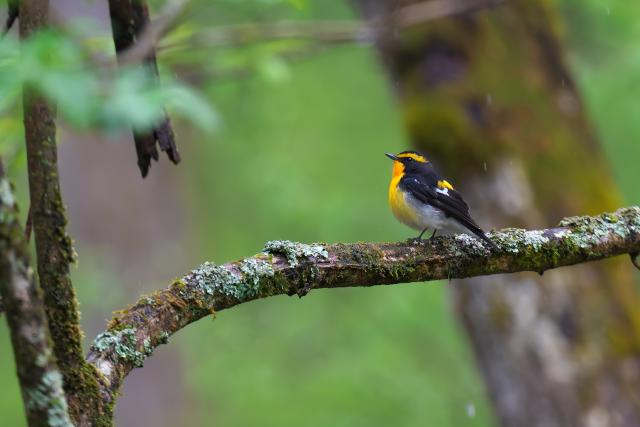 東屋で雨宿りしているとき、キビタキが何度か姿をみせました。
