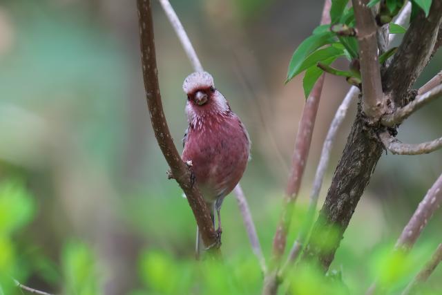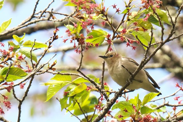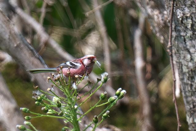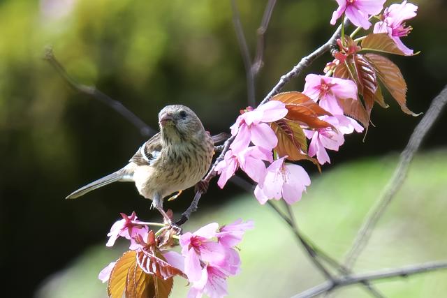 桜の花が4、5日前から咲き、見ごろを迎えています。そこへベニマシコの姿がありました。