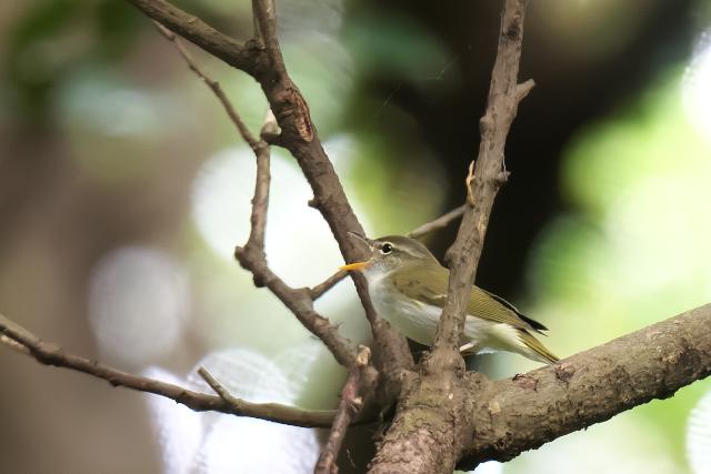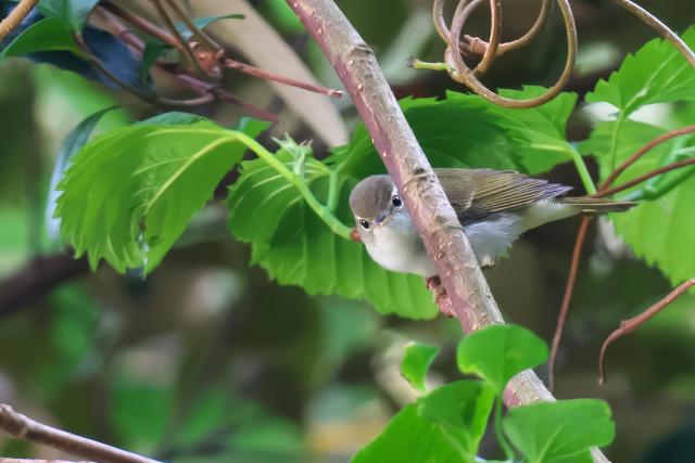 エゾムシクイはこけをいっぱいくわえる姿を見ました。