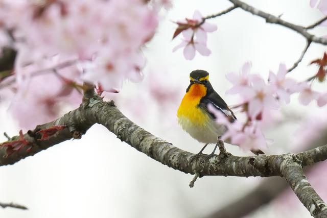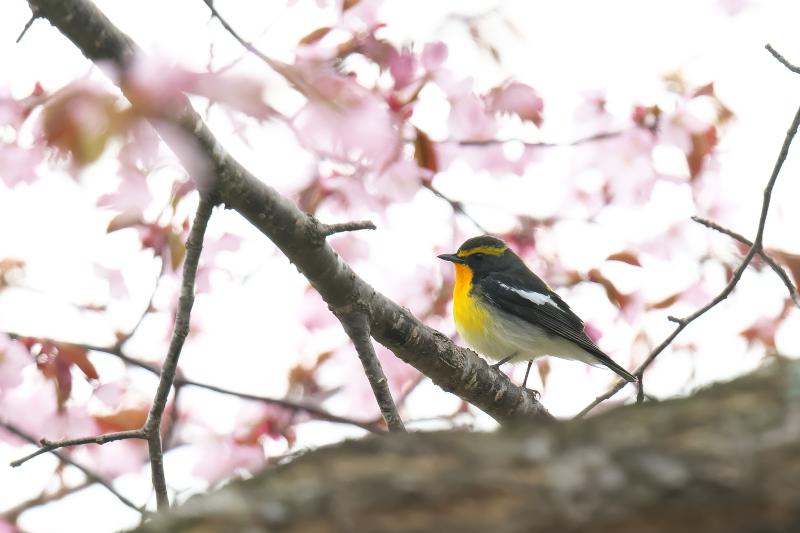 桜の花の中に黄色も目に入りました。キビタキもやってきていました。