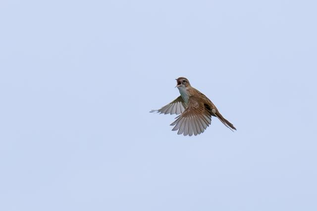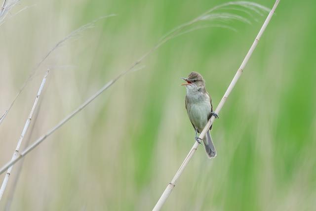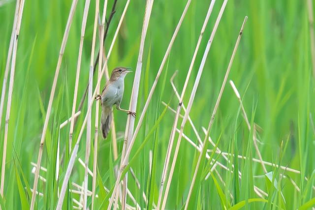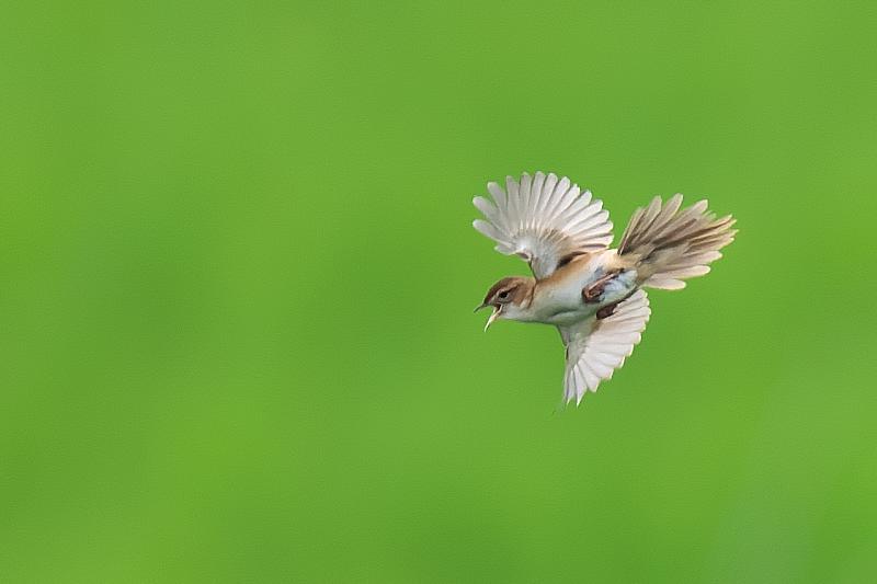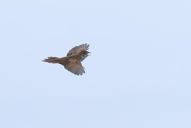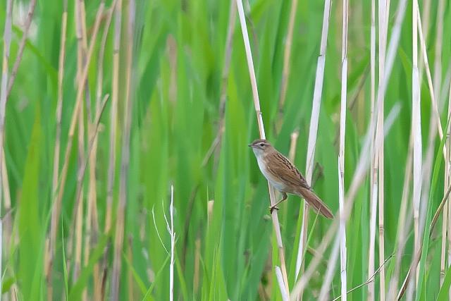オオセッカのさえずり飛翔です。少し距離があったのですが、飛び立っては葦原にもどることを、ひっきりなしに繰り返す様子を見ることができました。