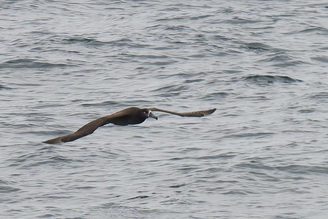 航路では、オオミズナギドリが頻繁に現れました。 カンムリウミスズメは一度だけ見ました。海面すれすれにまっすぐに飛び、速いピッチで羽ばたいて遠くなっていきました。 クロアシアホウドリは何度か目にしました。クロアシアホウドリが現れるとオオミズナギドリが小さく見えます。