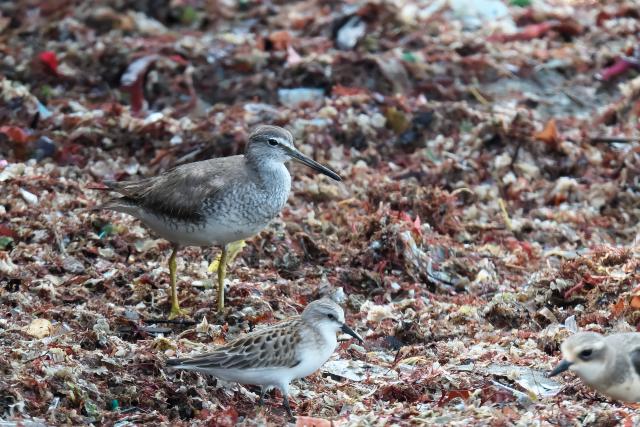 ウズラシギとヒバリシギは同じところで見ました。ウズラシギ2、ヒバリシギ1でした。