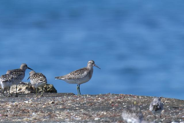 オグロシギとエリマキシギは一緒に行動していました。警戒心がとても強くて、距離をとってもすぐに飛んでしまうので手に負えないと思われました。しかし、時間とともに徐々に近づくことができました。オグロシギ1,エリマキシギ6と聞いていましが、エリマキシギ3は同時に見ました。