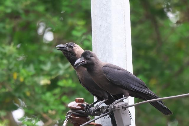 モリツバメはコシアカツバメよりやや小さいくらいの鳥です。芝生に降りたり、電線に止ったりを繰り返していました。初めて見ました。 カラスの画像はイエガラスと思います。