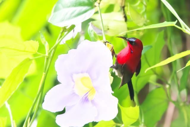 シキチョウは囀りがとても美しい鳥です。初めは、まさかこの鳥のさえずりとは思いませんでした。