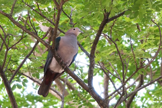 ホテル周辺で見た鳥です。コアオバトは少し離れたところに止っていましたが、虹色の美しいハトです。ミカドバトは同じ木に2〜3羽止っていました。大きなハトです。