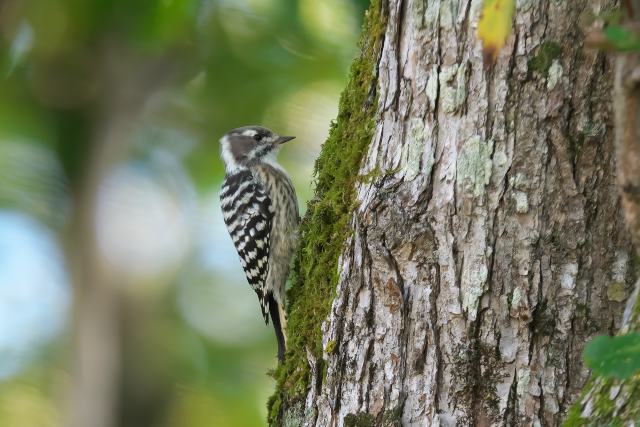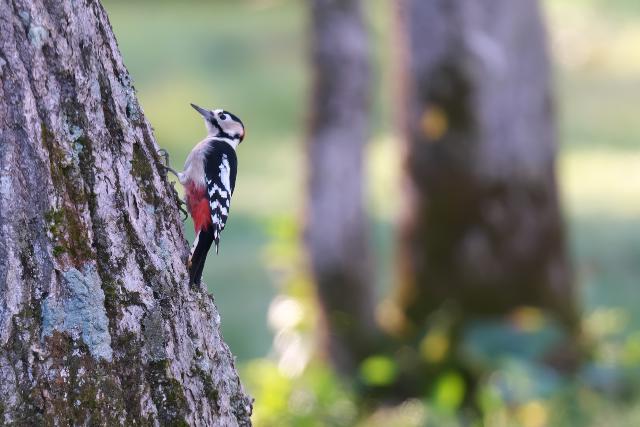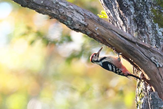 アカゲラが飛んで行ったあとに、オオアカゲラもやってきました。周りの樹木は紅葉が始まって、秋を感じさせる色になってきました。
