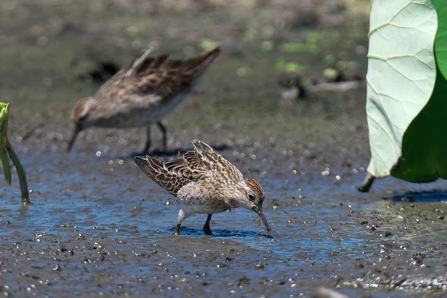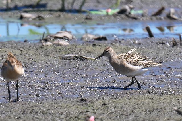 ウズラシギ3、セイタカシギ3でした。トウネンは多く、じっとしていると随分近くまでやってきました。