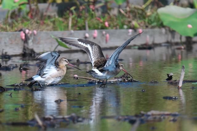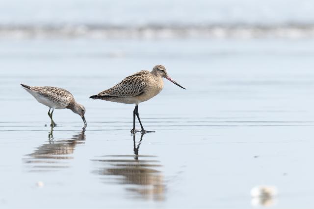 オオソリハシシギとオグロシギが一緒にいるところを見るのは初めてでした。大きさはほぼ同じくらいでした。