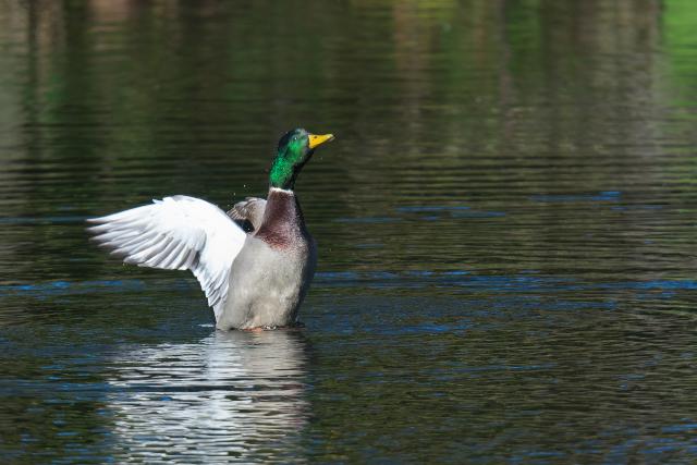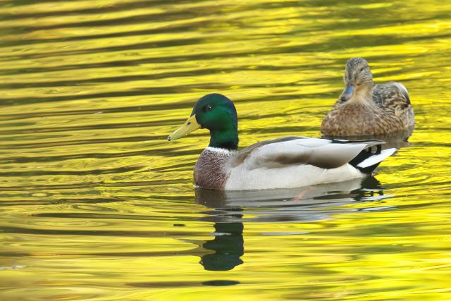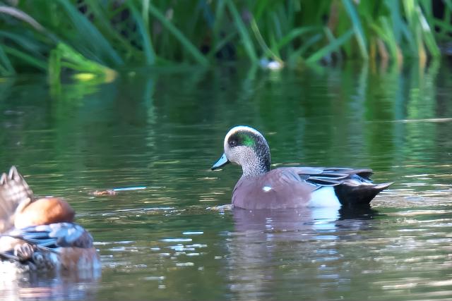 ヒドリガモに混じってアメリカヒドリ1羽を見ました。こちらの動きに合わせて、微妙に距離をとるので警戒心が強いようです。 マガモの1枚目は10/19の撮影です。