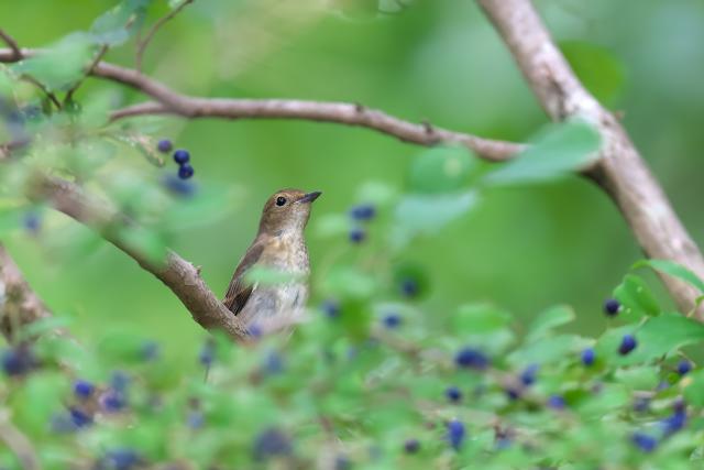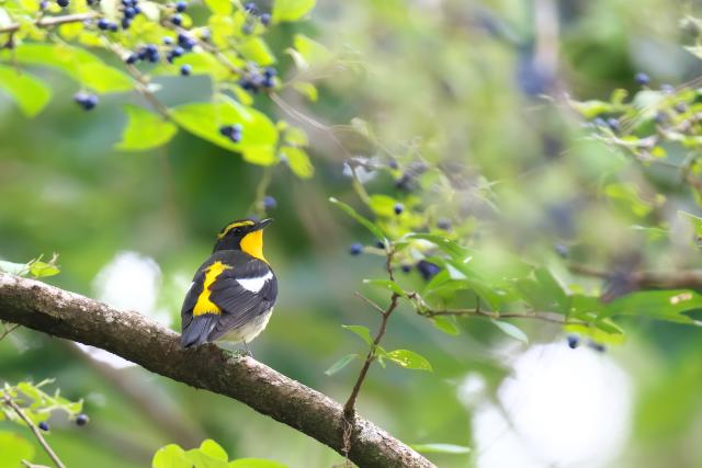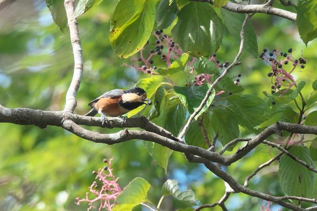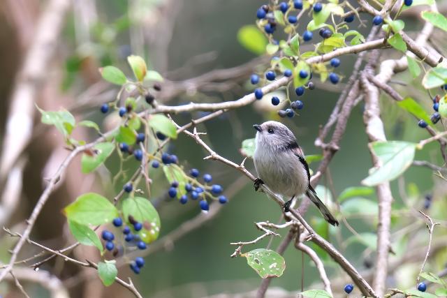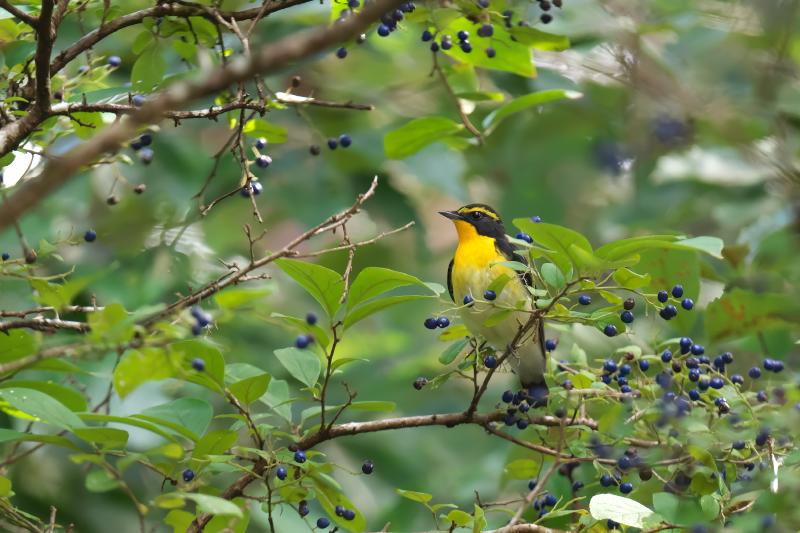 サワフタギが藍色の美しい実をたくさんつけています。今年は実の付きがとてもいいです。キビタキやエナガ、メジロ、シジュウカラ、ヤマガラなどがやってきました。