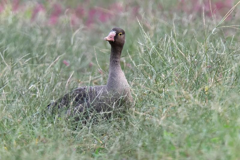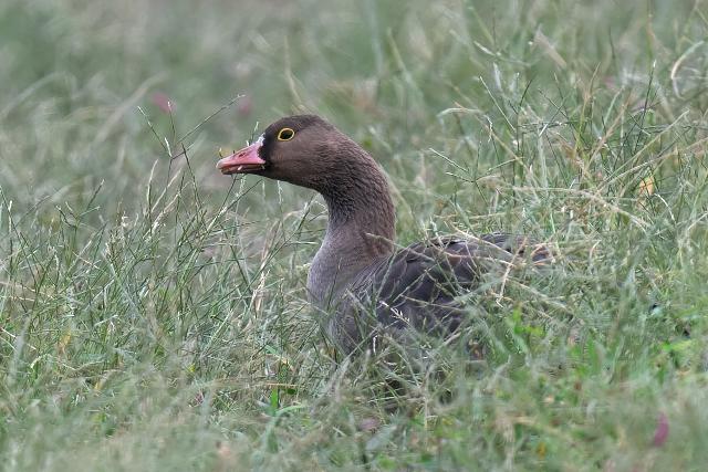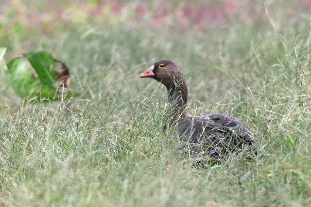 カリガネ1羽を見ました。畦の草むらにいて、伸びている草をむしり取るように食べていました。