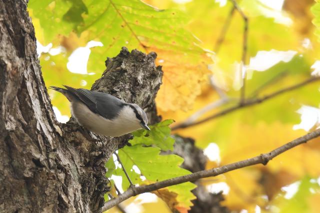 公園は紅葉が始まり、すっかり秋の装いです。カラ類の元気に飛び回る姿を見ました。