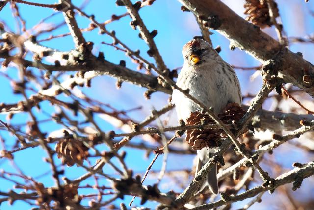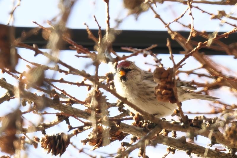 ベニヒワの小さな群れを見ました。じっくりと見たかったのですが、スズメの群れの中に混じった後、見失ってしまいました。