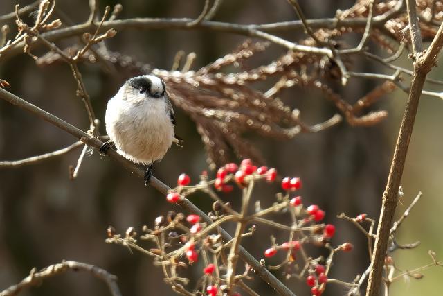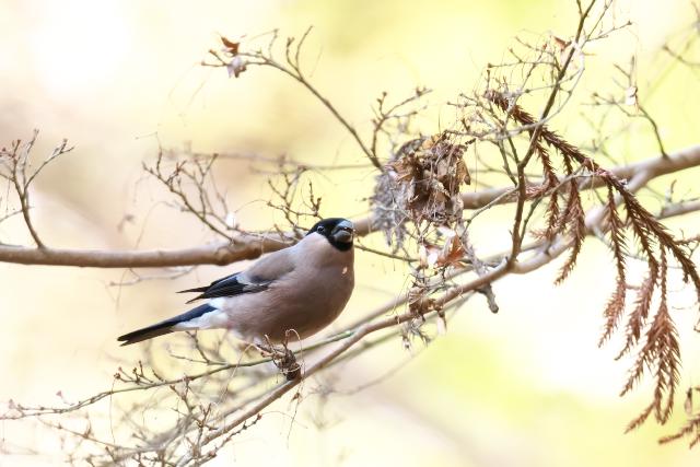 ウソは7〜8羽の群れでした。餌取りに夢中で長い時間とどまっていたので、じっくりと見ることができました。