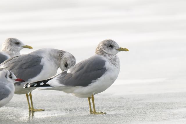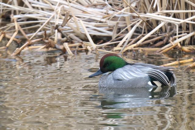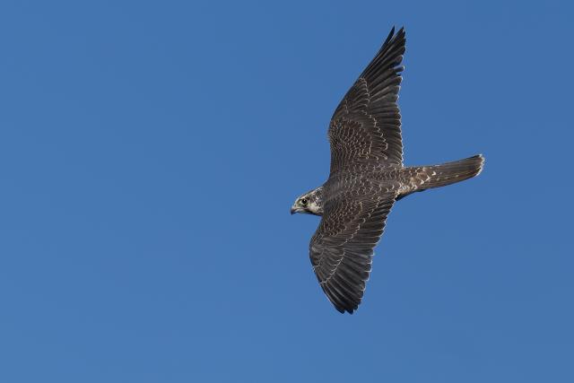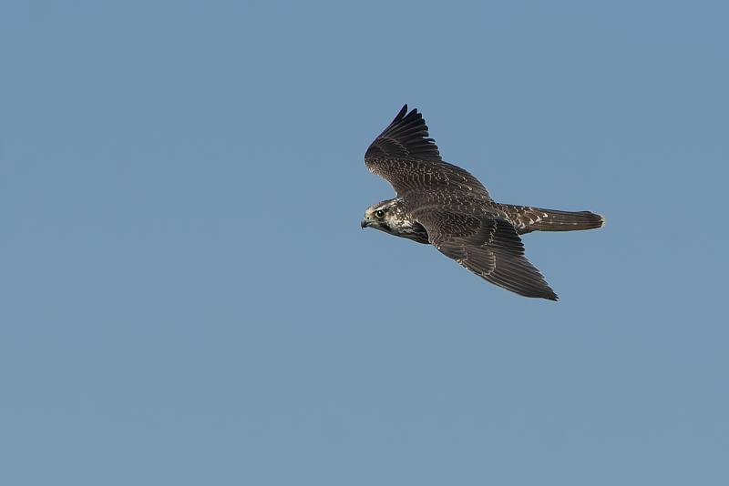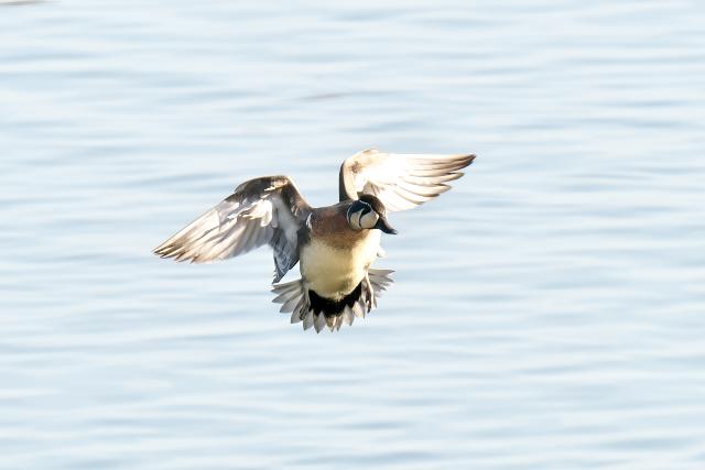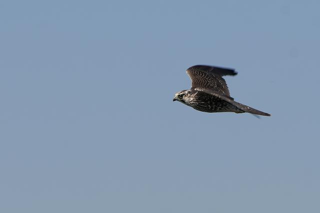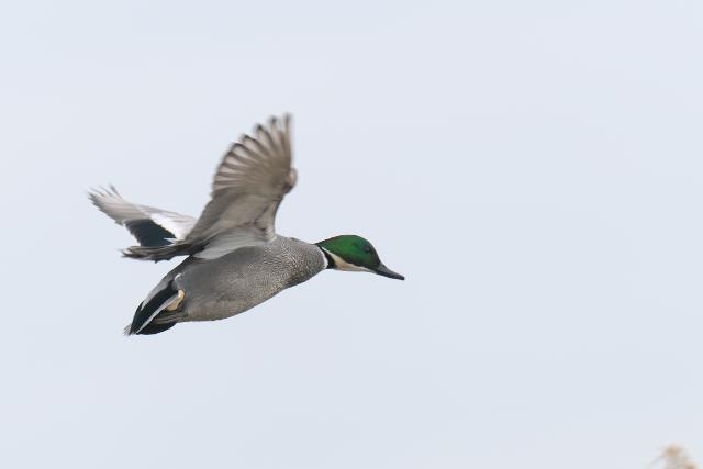 ハヤブサが現れましたが、このときはカモやシギはちらりと反応したものの大きな動きはありませんでした。ハヤブサも成果なく飛び去りました。