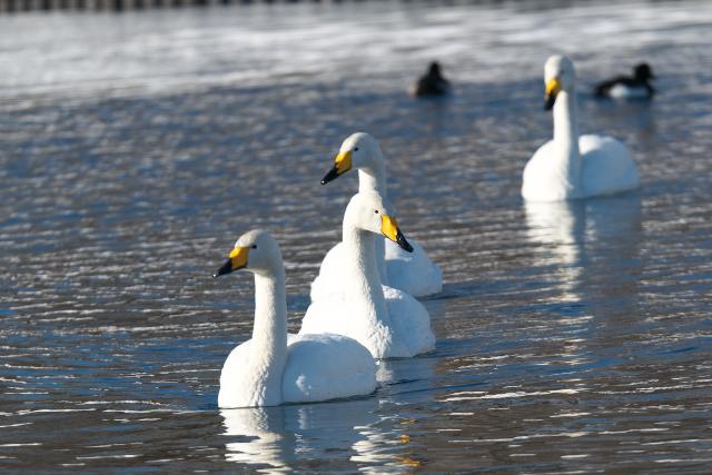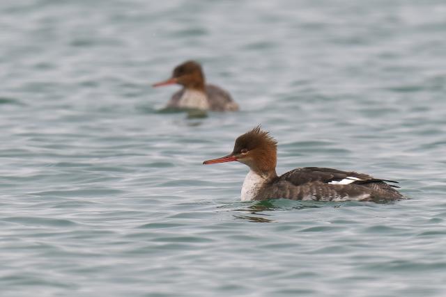 ミコアイサは換羽が進んで見慣れた姿になっていました。複数やってきていました。