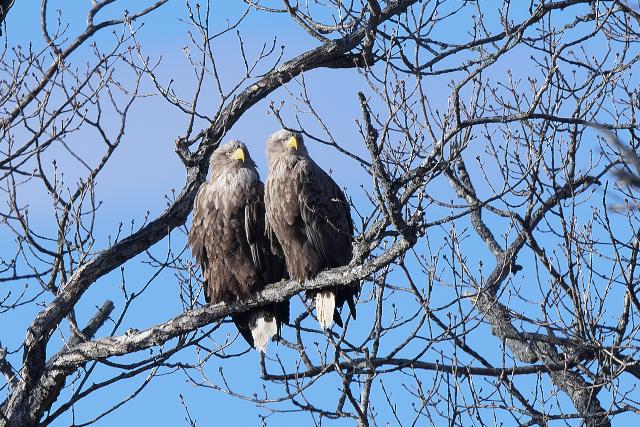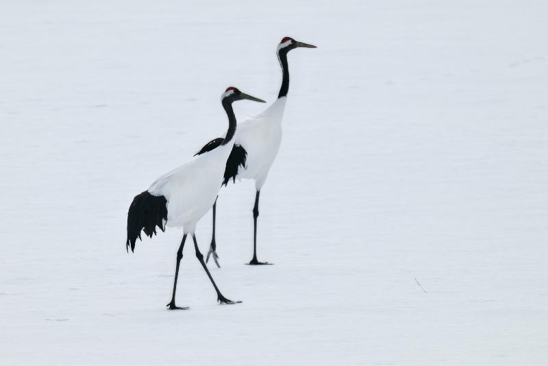 港からの帰り、思いがけずタンチョウ2羽に出会いました。うれしい出会いでした。