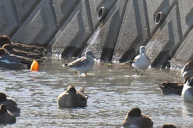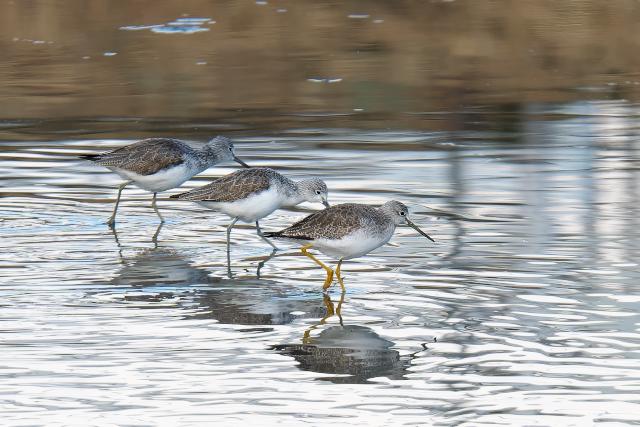オオキアシシギはかなり距離のあるところにいました。アオアシシギの中にいて、この中の鮮やかな黄色の足を持ったシギをさがしました。近くで写したという写真をみせてもらうと、その美しさがより感じられました。