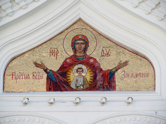 タマネギの形の屋根をもつ目立つ建物で、ロシア正教会の教会です。19世紀末に建てられました。
