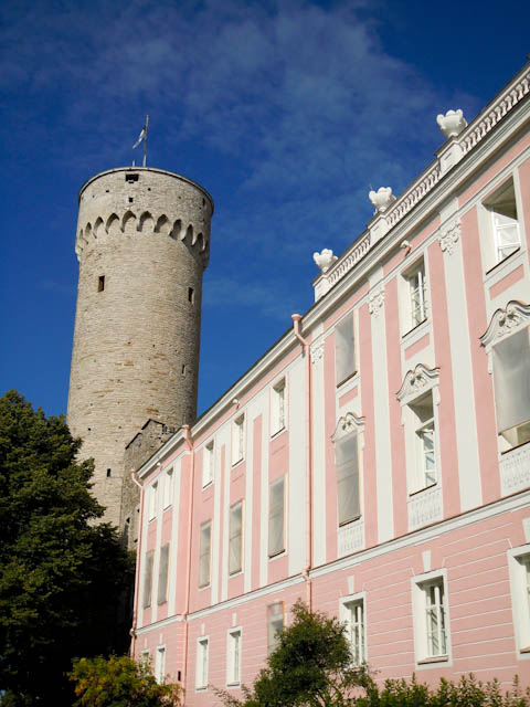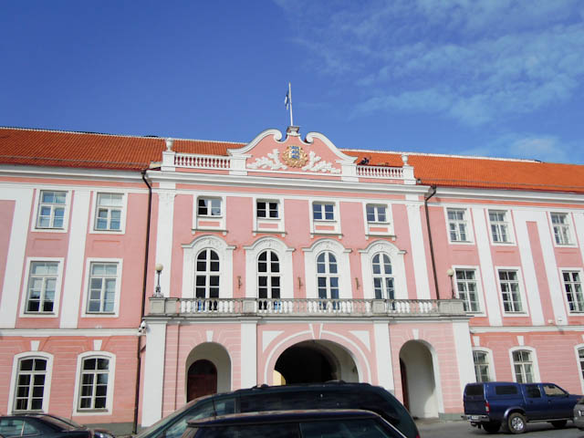 ピンク色の建物で、アレクサンドル・ネフスキー大聖堂と向かい合って建っています。かつてエストニア人の砦があった場所に建てられた騎士団の城で、18世紀後半にいまの姿になったそうです。現在も政府の一部と国の議会が使っています。正面玄関の3匹のライオンは国章です。高い塔は「のっぽのヘルマン」です。