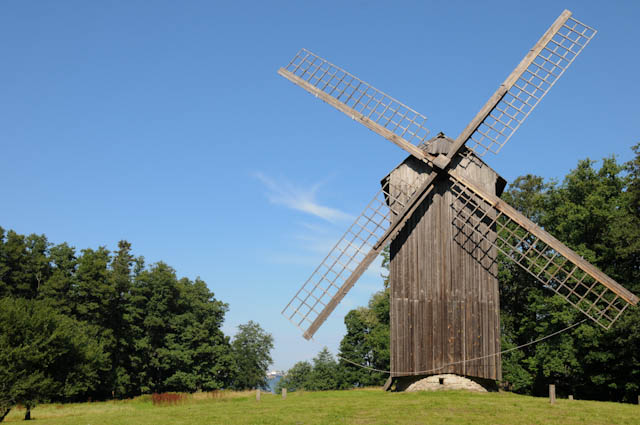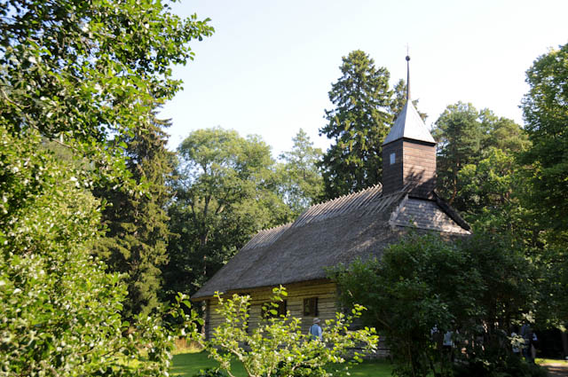 午後はオプションのツアーを申し込みました。エストニア野外博物館は、18世紀から1930年代の農村の生活を再現する野外博物館です。茅葺きの建物の中には農具や生活用具、暖炉などの展示がありました。日本で見る昔の農村の生活とそう変わらないという印象です。消防署、学校、水車などの建物も広い敷地に点々と建っていました。