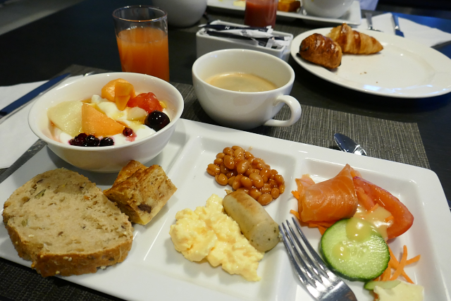 朝食はスクランブルエッグ、ソーセージ、ヨーグルト、パンはどれもおいしくて、特にクロワッサンは気に入りました。