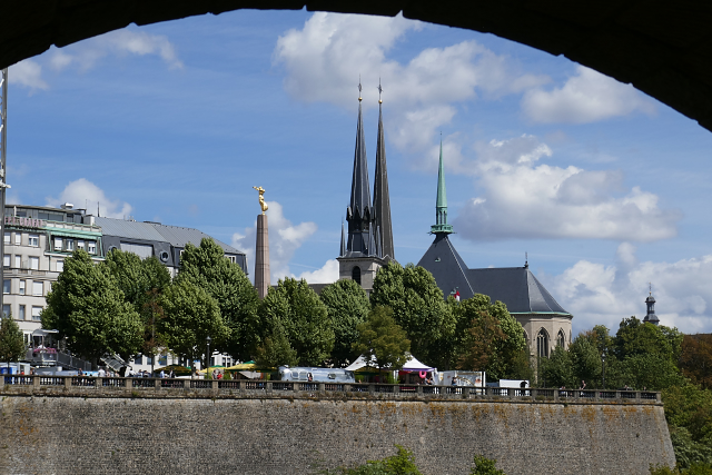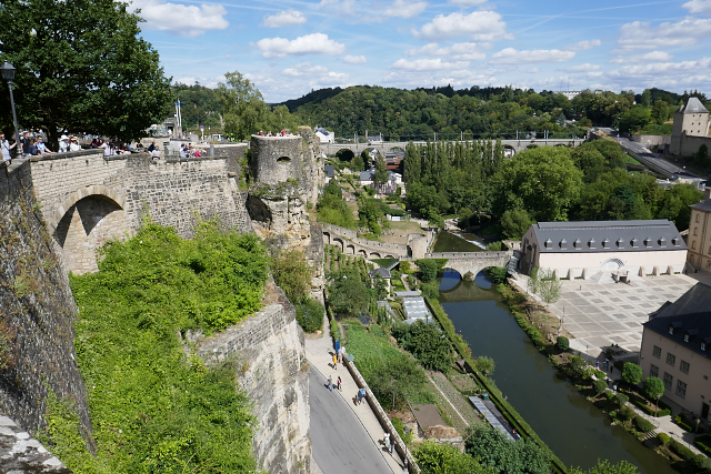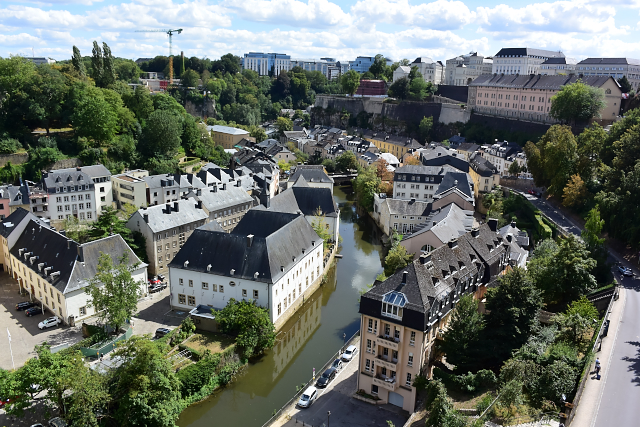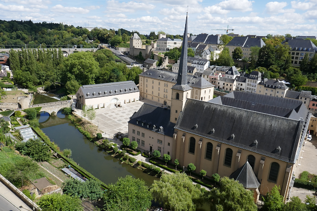 ルクセンブルクの古い街並みと要塞群は1994年、世界文化遺産に登録されています。旧市街には、各支配下の時代に築かれた要塞が今も残っていて、展望台からの眺望は、森と建物の美しい景色が見られました。