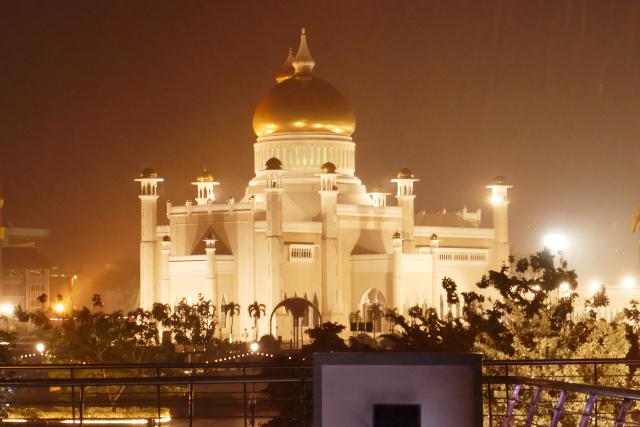ライトアップされたモスク見学は土砂降りの雨の中での見学でした。