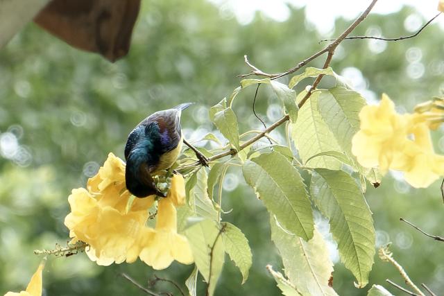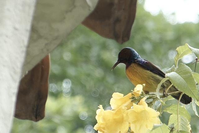 おりに入っていないキゴシタイヨウチョウ、ムナオビオウギビタキも見ました。