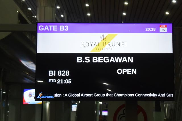 ブルネイ&マレーシアの旅行も終わりに近づきました。海鮮料理の夕食のあと、飛行機に乗り込みます。バンダル・スリ・ブガワンで乗り継ぎ、それから成田に向かいます。