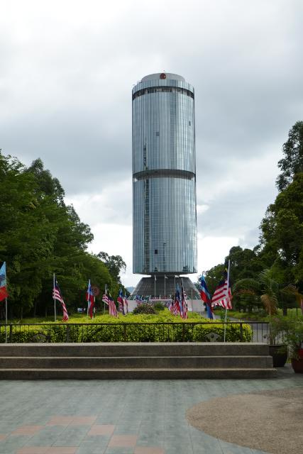 円筒形のビルです。外から見ただけですが、柱が中央に一本だけだとガイドさんが説明していました。